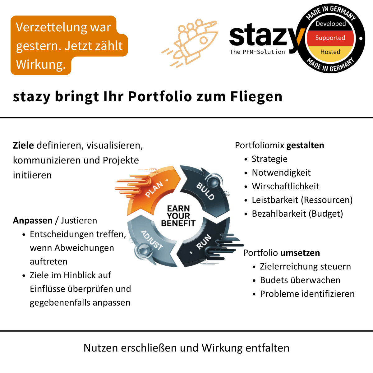 strategische Führung mit stazy Ich will Wirkung - nicht nur Fortschrittsberichte. Und ich will wissen, ob wir auf Kurs sind. Immer. Deshalb ist das Portfolio [...]